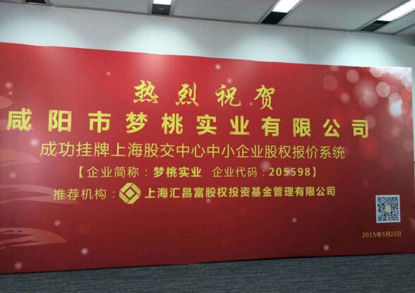 熱烈祝賀咸陽夢桃實業(yè)有限個公司(205598)在上海股交中心成功掛牌
